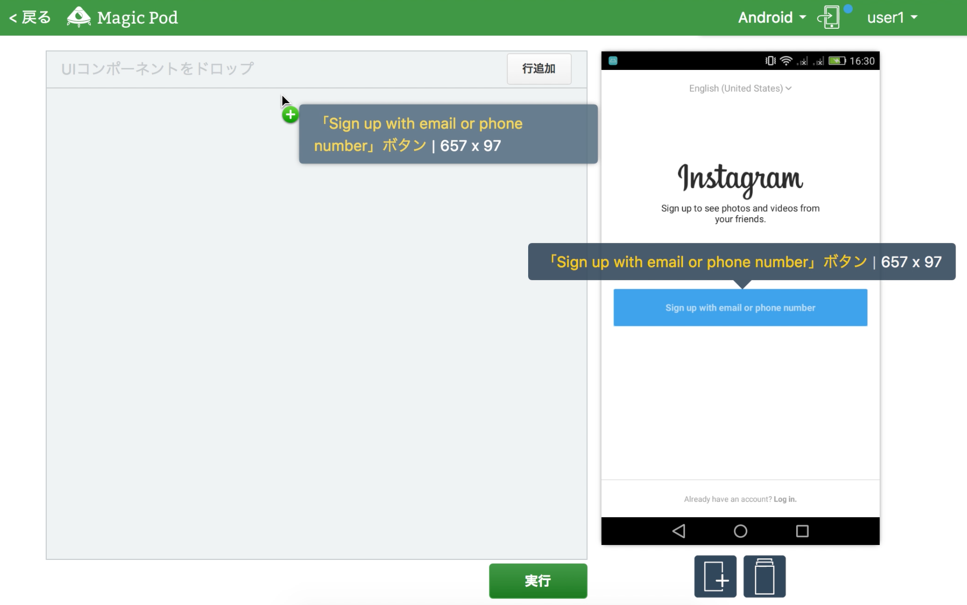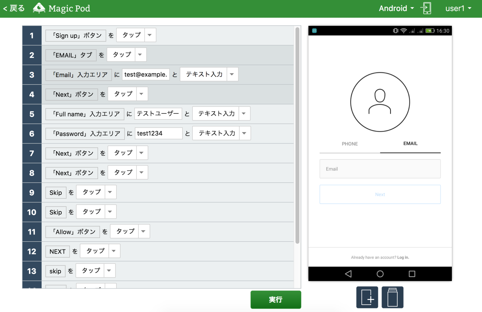 テスト作成はMagicPodのコアとなる機能です。アプリの画面キャプチャを与えると、そこから「名前入力欄」「登録ボタン」などの画面項目を画像解析で自動検出し、それを選んでテストを作成できます(図4)。※1