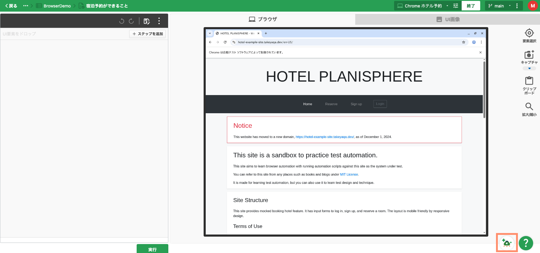 自動テスト界隈では有名なHotel Planisphereを使っていきます。