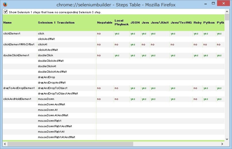 対応表を見ると、まだ変換がうまくできないコマンドも多数ありますが、最終的にはSelenium 1とSelenium 2のスクリプトの完全な自動相互変換を目指しているようです。※3