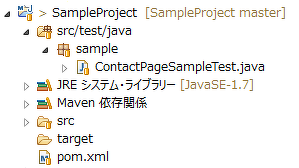 }続いて、図2のような構成で、このContactPageSampleTest.javaを含むテスト用Mavenプロジェクトを作成します。ここではEclipseを使ってMavenプロジェクトを作成しています。Javaのバージョンは、CircleCIのデフォルトである1.7を使用しています。