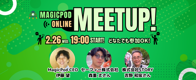 | 19:45~20:00 | 開発・テスト環境でMagicPodを有効活用する | 吉野 和宏さん 株式会社STORY 開発チーム |